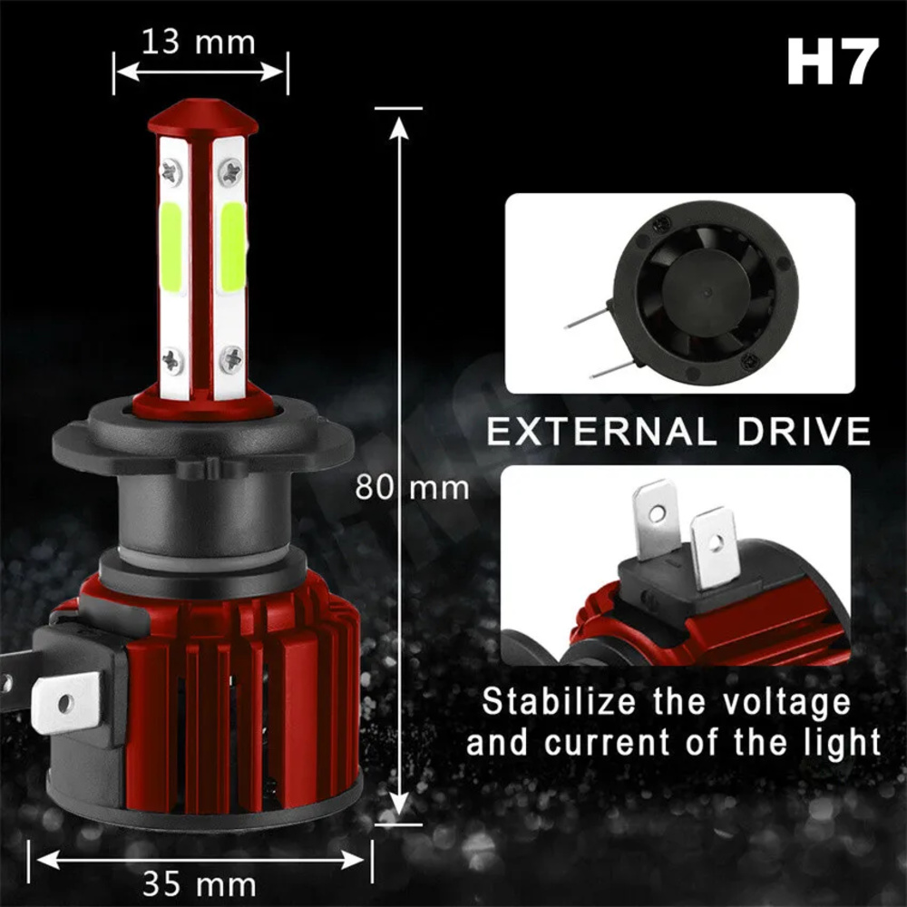 F8R H11 Led Bulbs 9005 HB3 H7 Led Headlight 50W 12000LM 8000K Blue Light Car LED Headlight Bulb 4 SIDE COB Car Lights