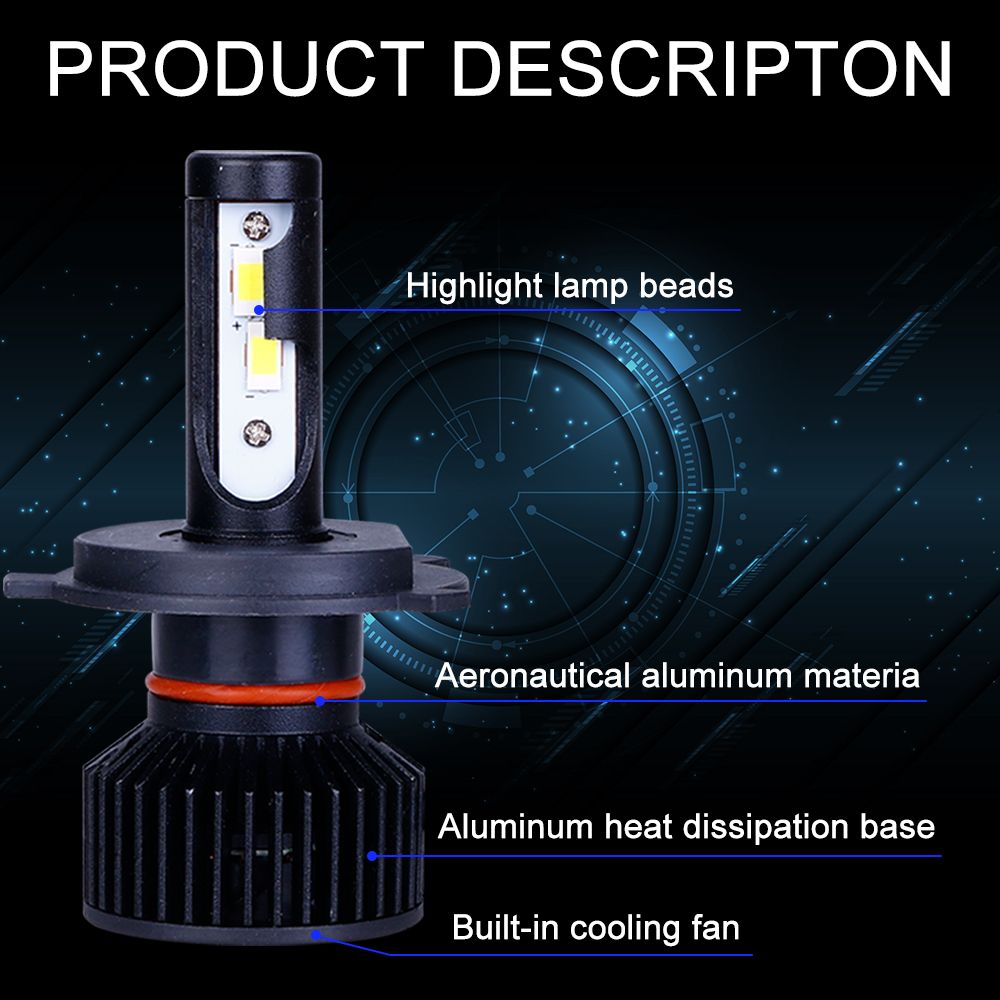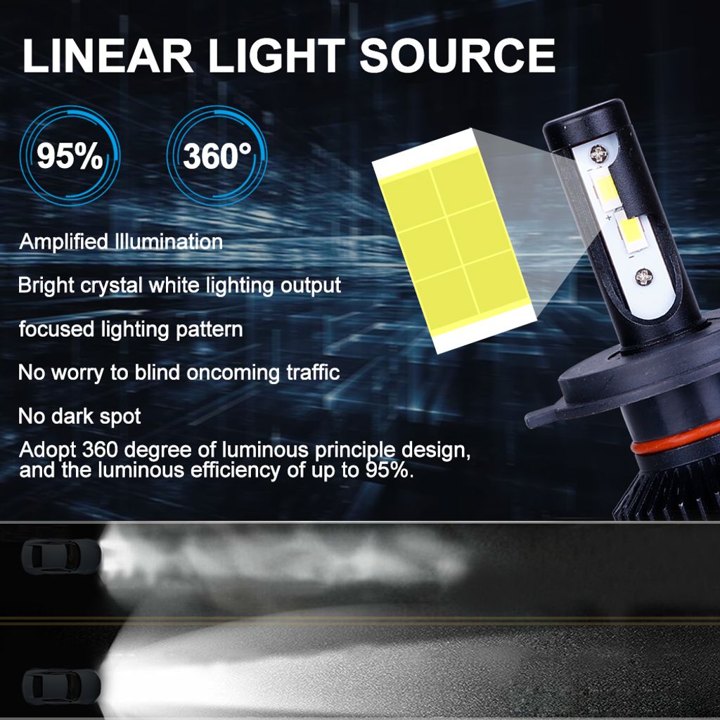 | Power | 50W/Pair(25W/Bulb) | Luminous Flux | 10000LM/Pair(5000LM/Bulb) |