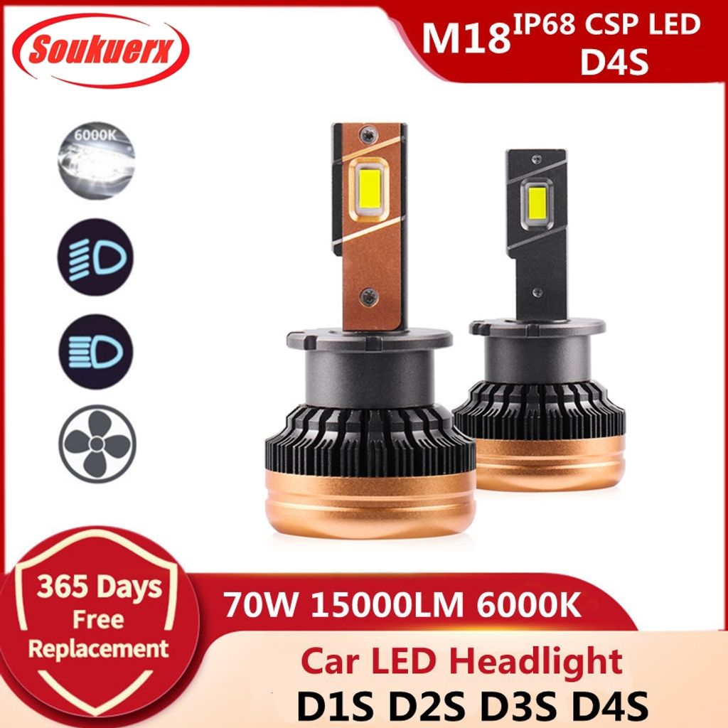 M18 D4S LED D4R Car Headlight D1R D2R D3R LED D1S D2S D3S 15000LM 70W Lights Auto Bulbs 6000K Bulbs 1:1 size Fog Lamps
