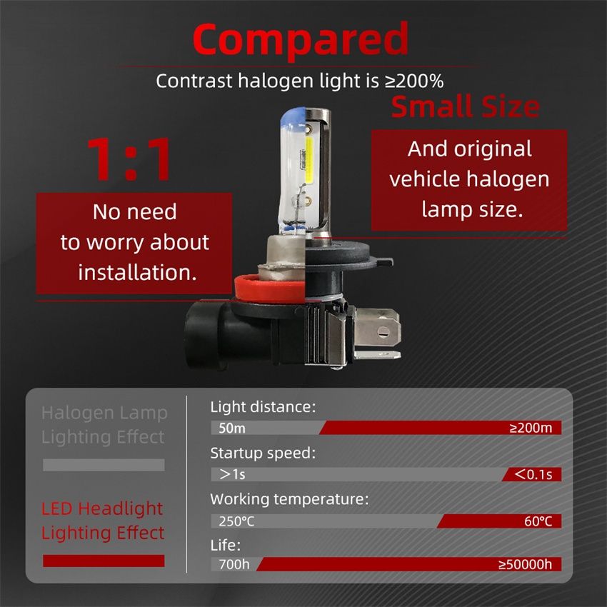 M2 H4 H7 H11 9005 9006 Car Led Headlight Bulb HB3 HB4 Led Lights for Car 50W 10000LM 1:1 Mini Size DOB LED Headlamp