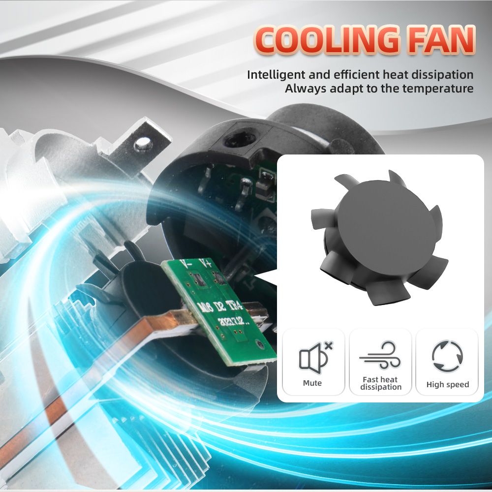 2.POWERFUL HEAT DISSIPATION: Aluminum heat sink and 12,000 RPM Turbo Cooling fan with high efficiency colling to ensures your LED Headlight bulbs Over 50,000 hrs of brilliant continuous light. Control driver has intelligent control chip,can monitor fan speed for optimal heat protection and performance and provide wide voltage,constant current IC.