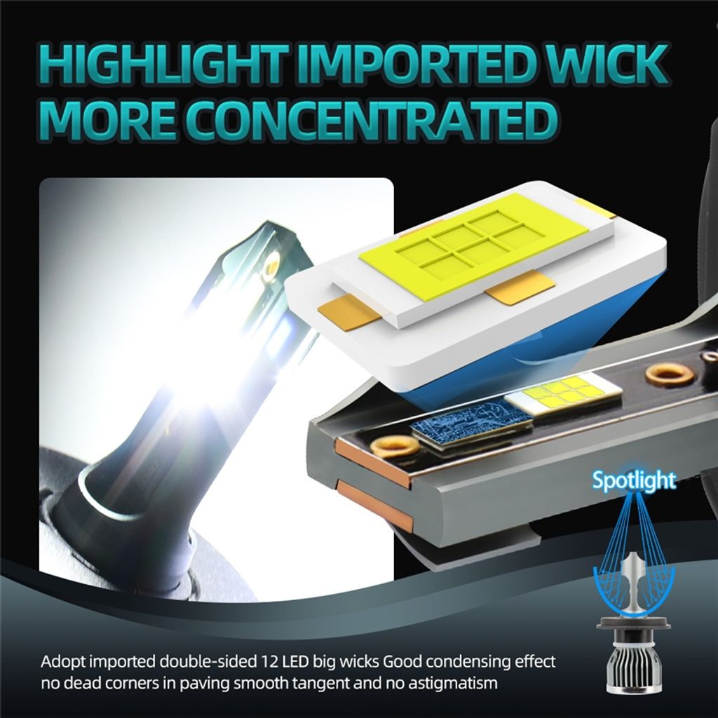 1.HIGH BRIGHTNESS: Lastest CSP TX3570 led chips with 6000K cool white light ;300% brighter than your stock Halogen headlights.Distance Up To 200M. Q3 technology to ensure a perfect beam pattern without any dark spots or foggy light.