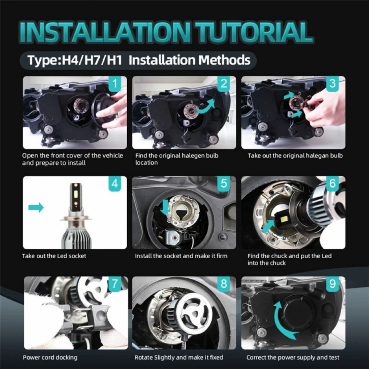2.Easy to Install: Q3 led headlights almost the same 1:1 design as halogen, it can be perfectly plugged into your car without any modification. Just plug and play, only needs 3 minutes, no need tools.