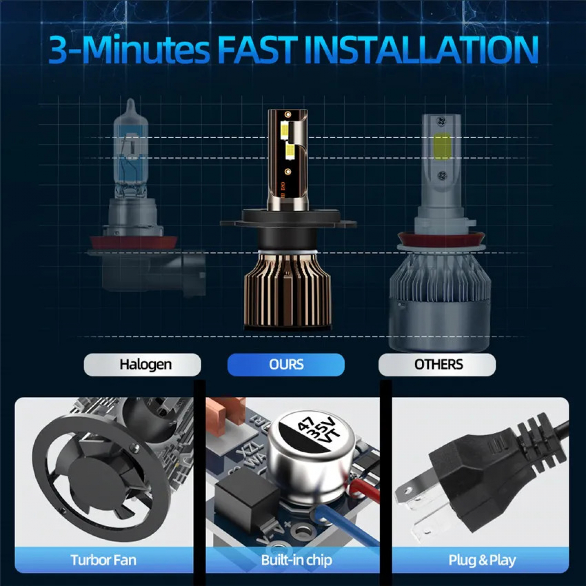 Q7 H4 Hi-Lo Beam Super Bright Auto Bulb H7 H11 H1 9005 9006 Car LED Headlight Bulbs 60W 12000LM 6000K Headlamp Fog Lights