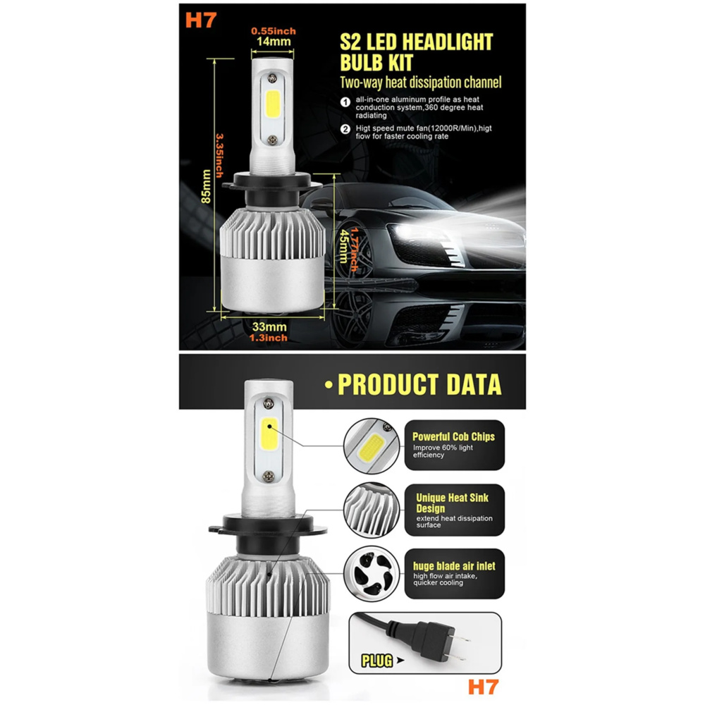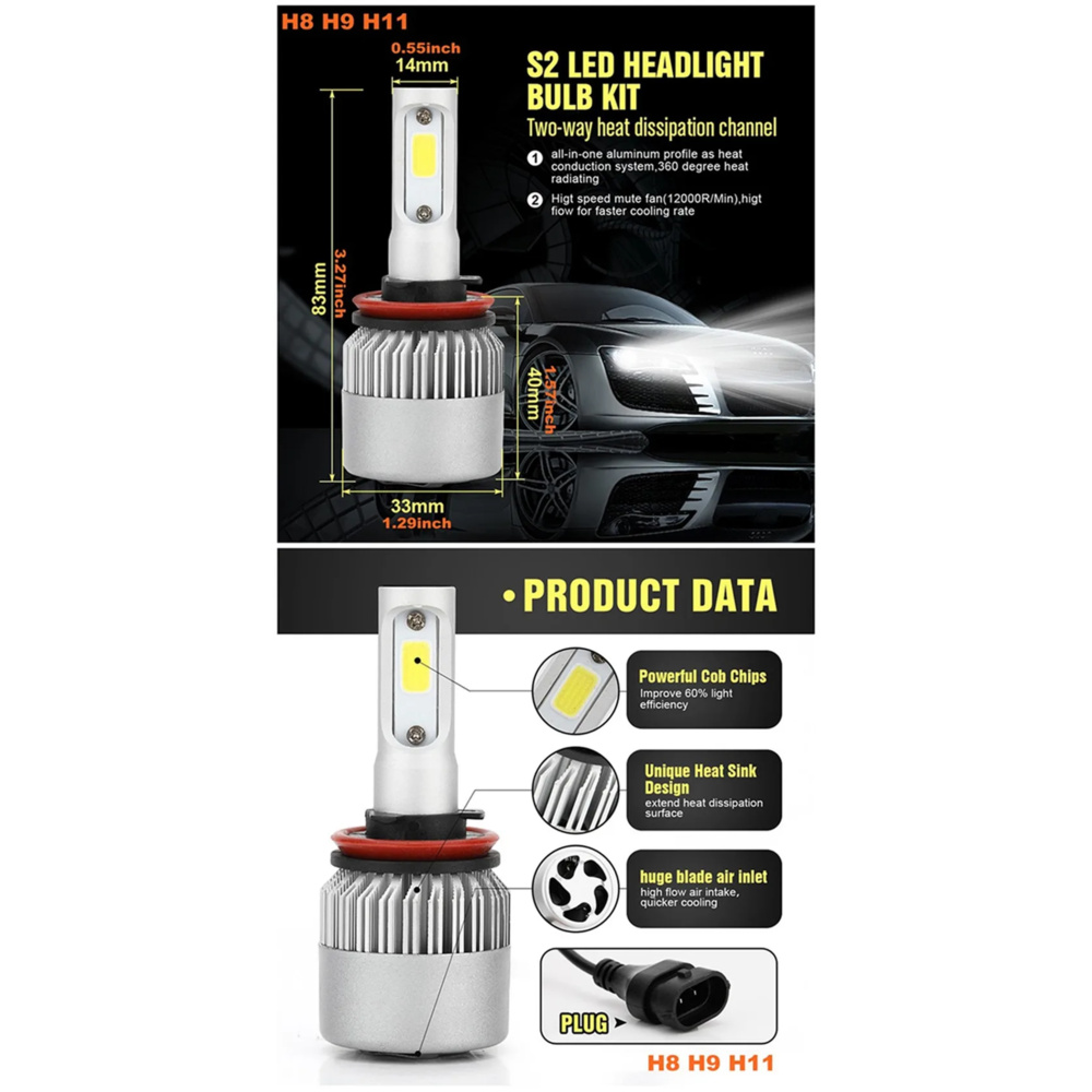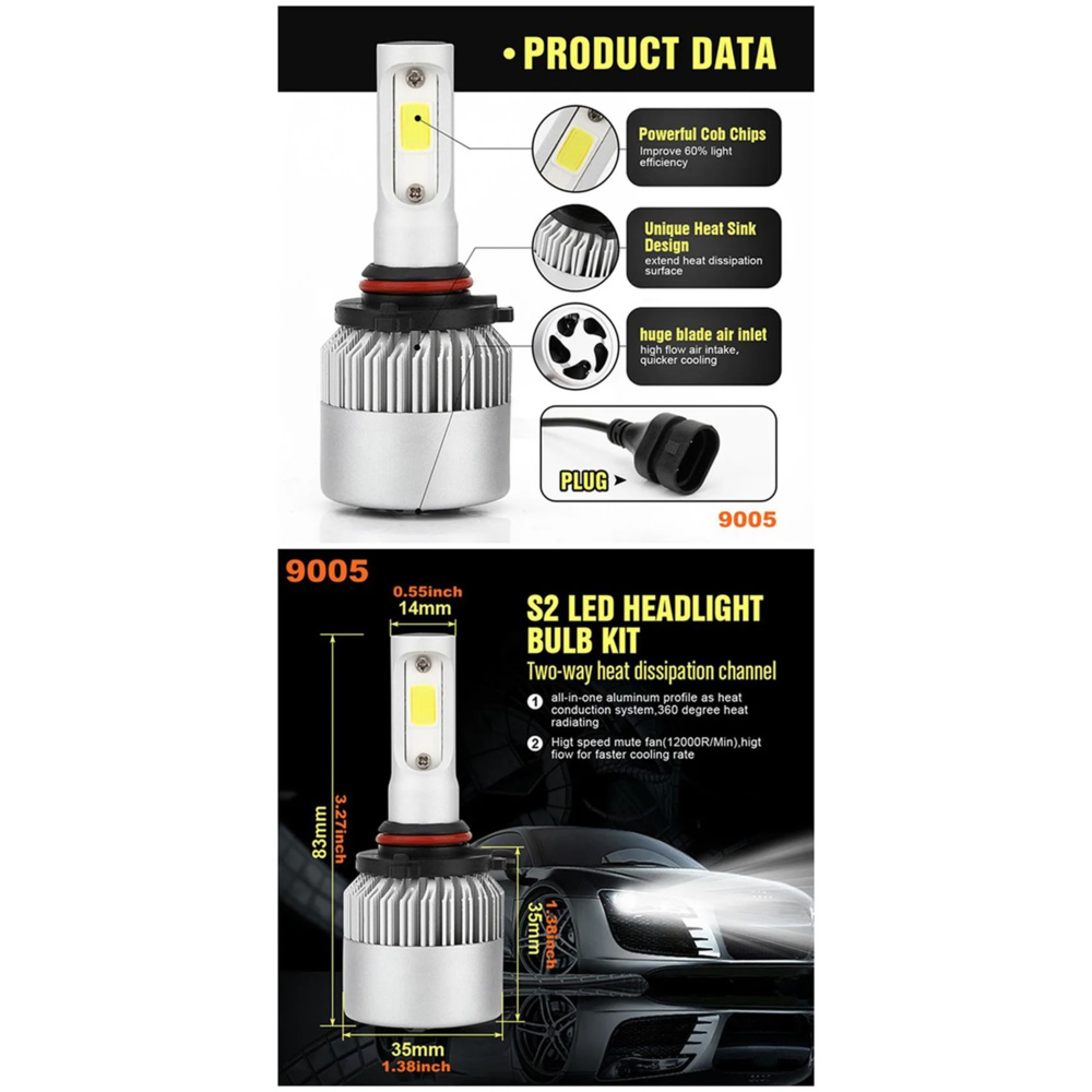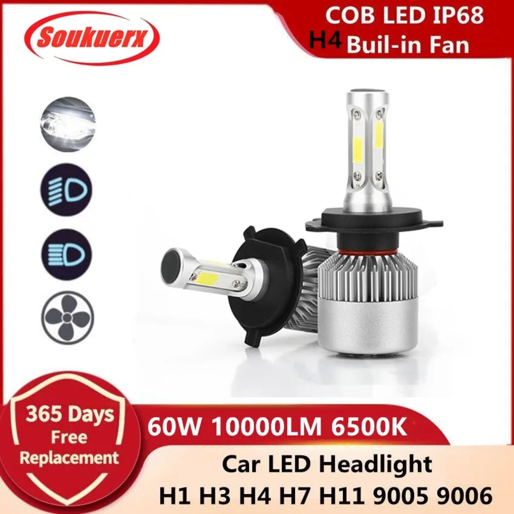 S2 H4 Hi-Lo Beam Super Bright Led Bulb H7 H11 9005 9006 HB3 Car LED Headlight Bulbs 60W 10000LM 6500K Auto Headlamp