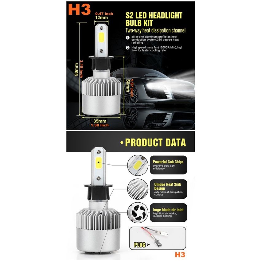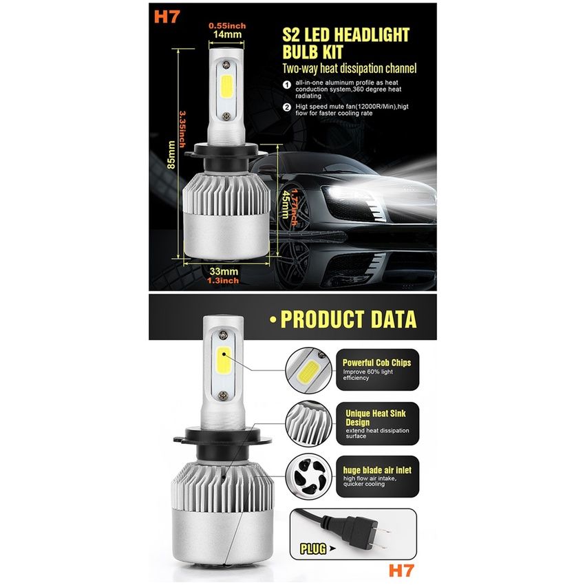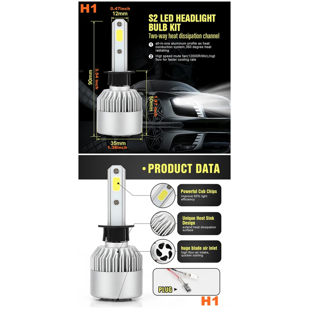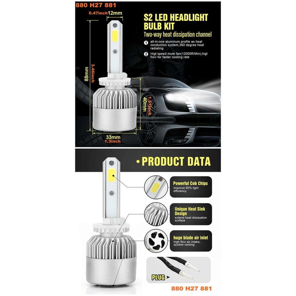 S2 H4 Hi-Lo Beam Super Bright Led Bulb H7 H11 9005 9006 HB3 Car LED Headlight Bulbs 60W 10000LM 6500K Auto Headlamp