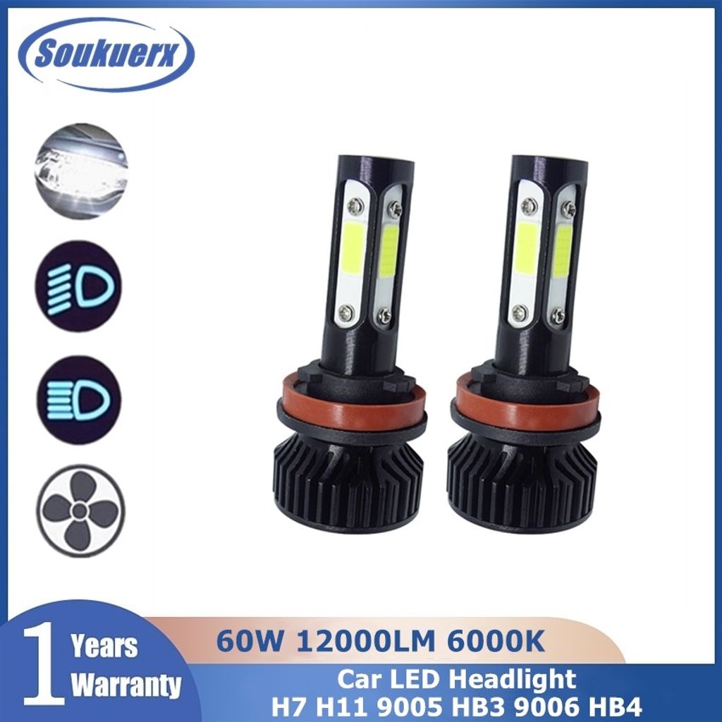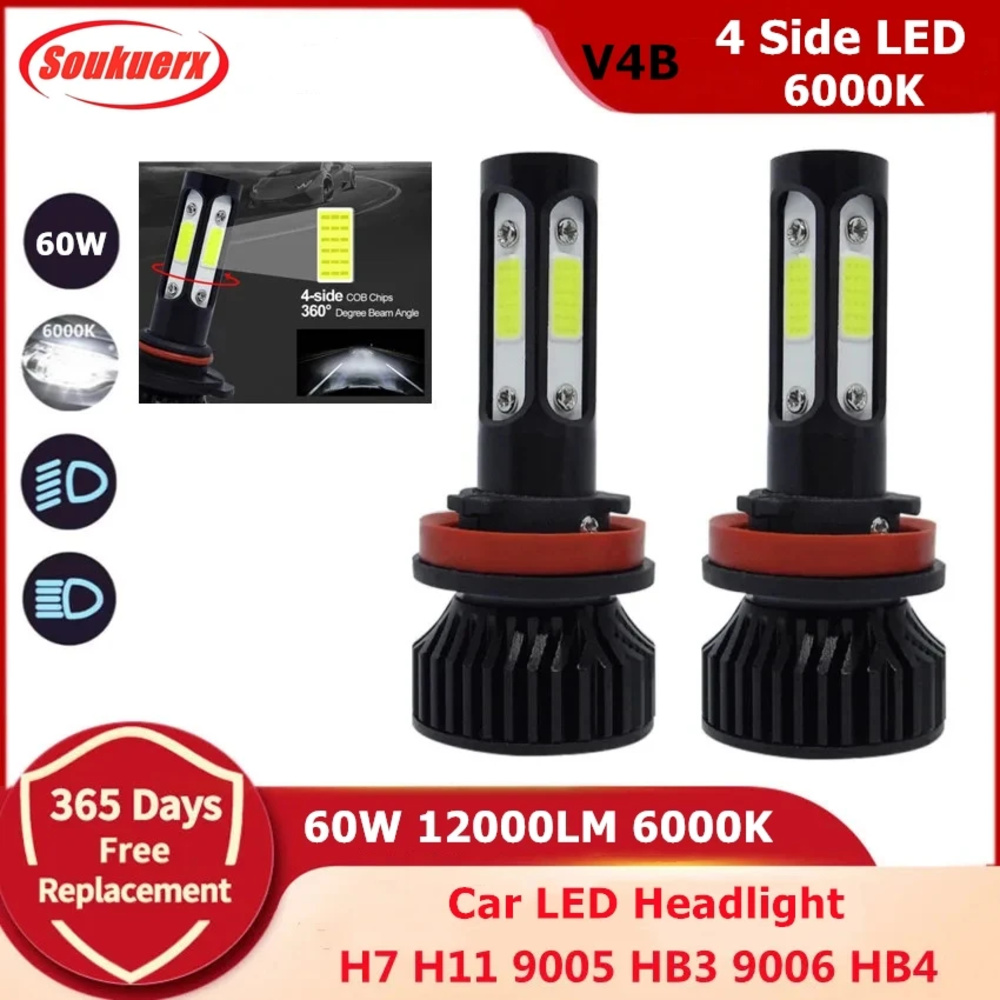 V4B H11 H7 Led Headlight Bulbs 9005 9006 Car Lights 60W 12000LM 6000K 4 Side COB LED HB3 HB4 12V Auto Headlamps