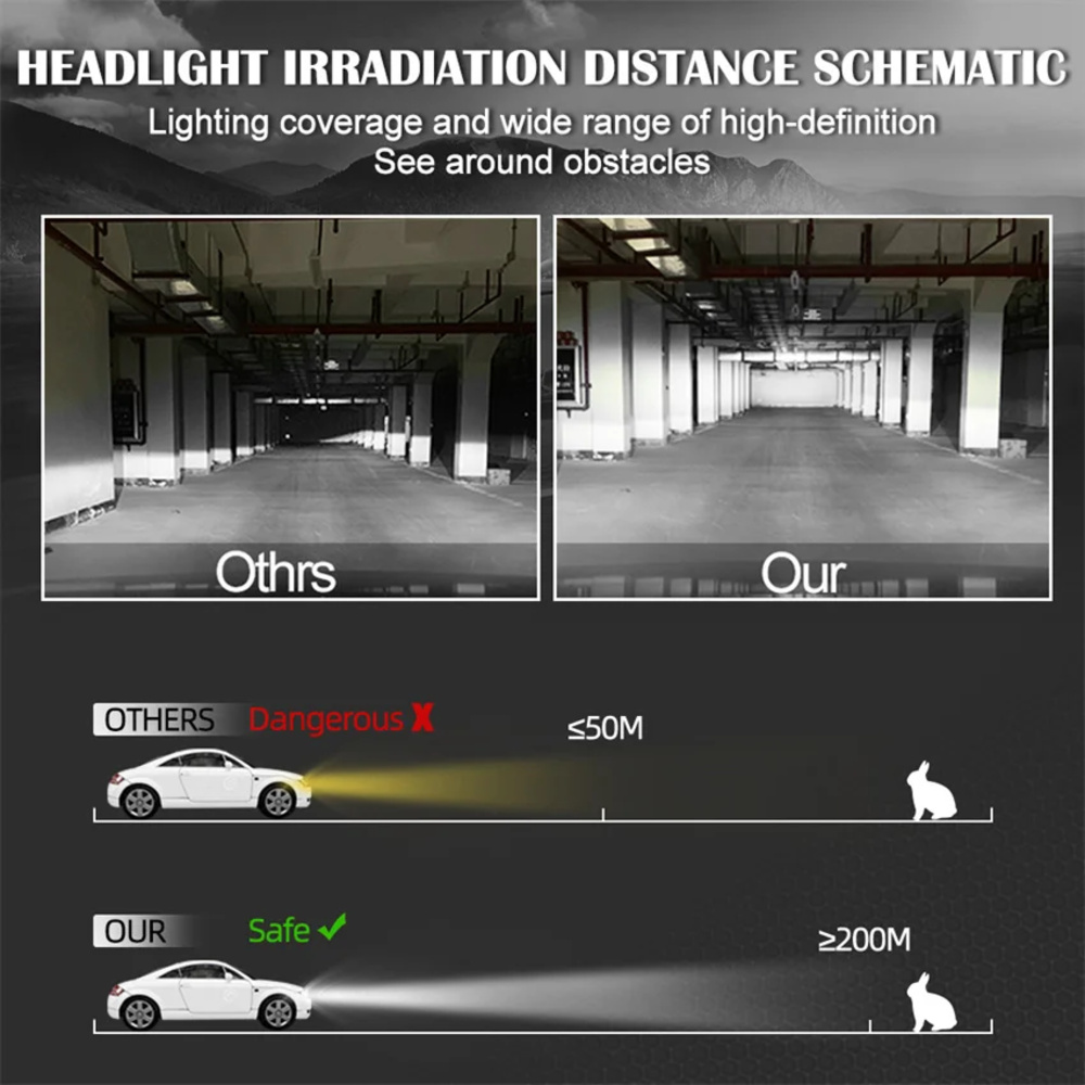 1. High brightness: The latest COB 1021 top chip. with 6000K cold white LED chip; 300% brighter than the existing halogen headlights. Advanced technology ensures perfect beam patterns without any black spots or fog lights.