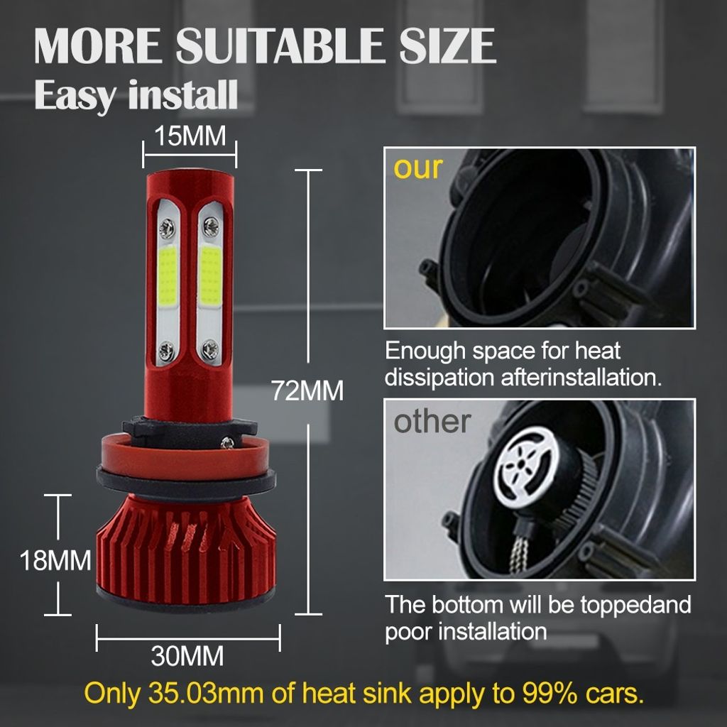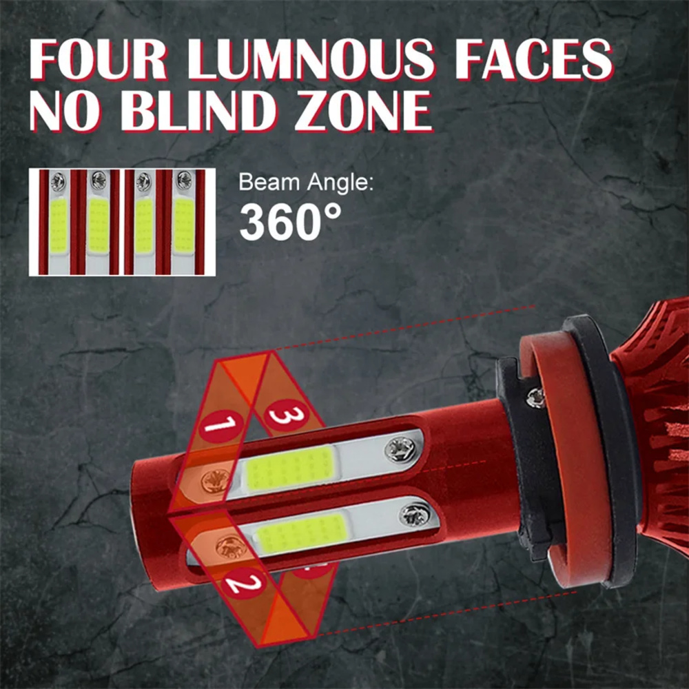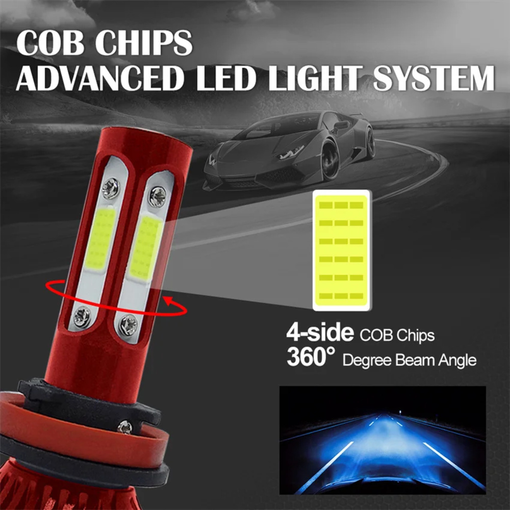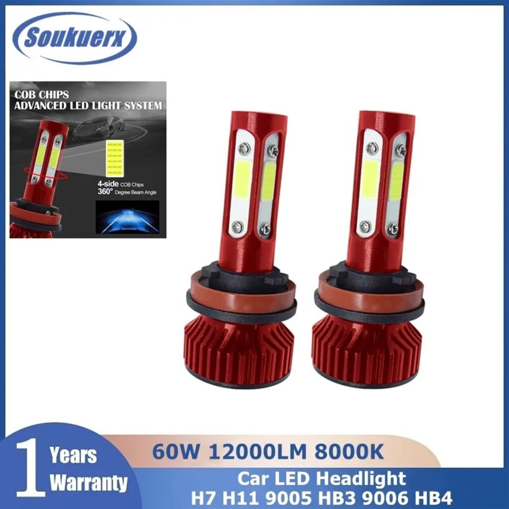 V4R H11 H7 Led Headlight Bulbs 9005 9006 Car Lights 60W 12000LM 8000K Blue Light 4 Side COB LED HB3 HB4 Auto Headlamps