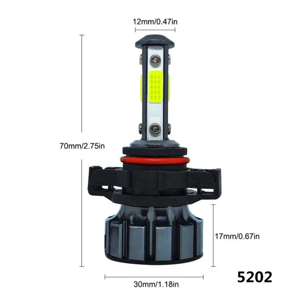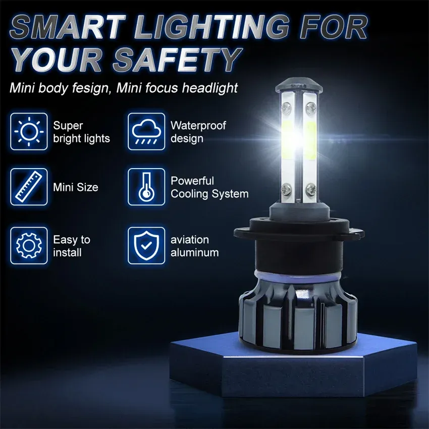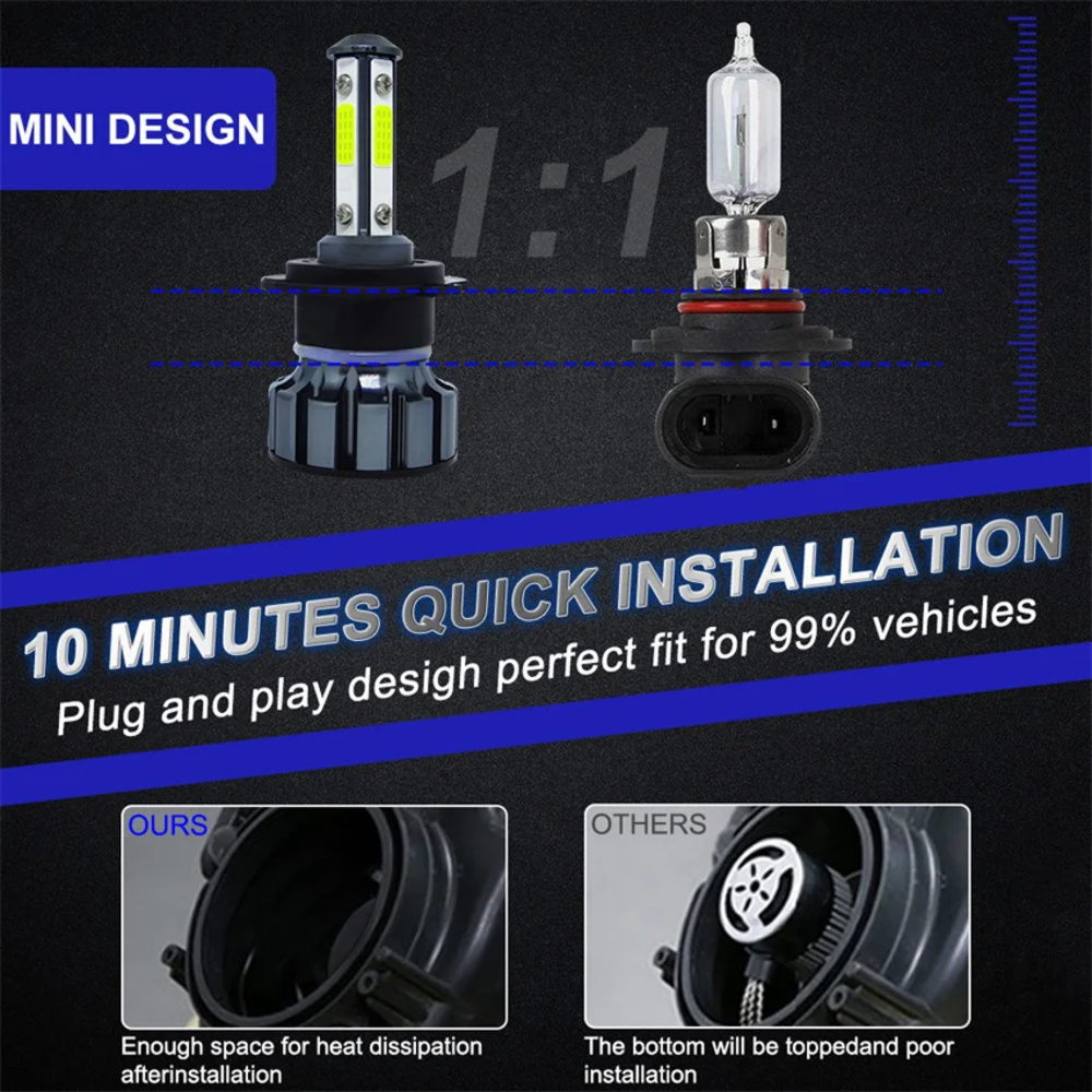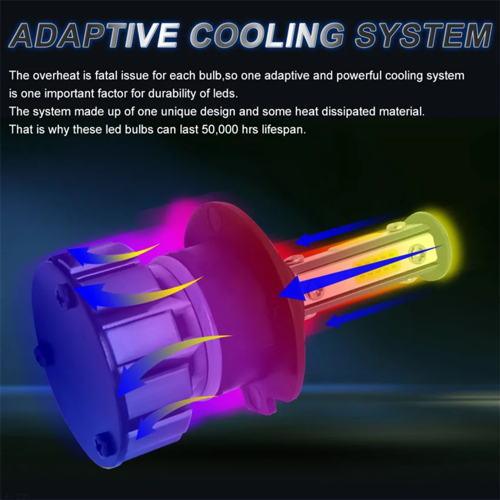 1. High brightness: The latest COB top chip. with 6000K cold white LED chip; 300% brighter than the existing halogen headlights. Advanced technology ensures perfect beam patterns without any black spots or fog lights.