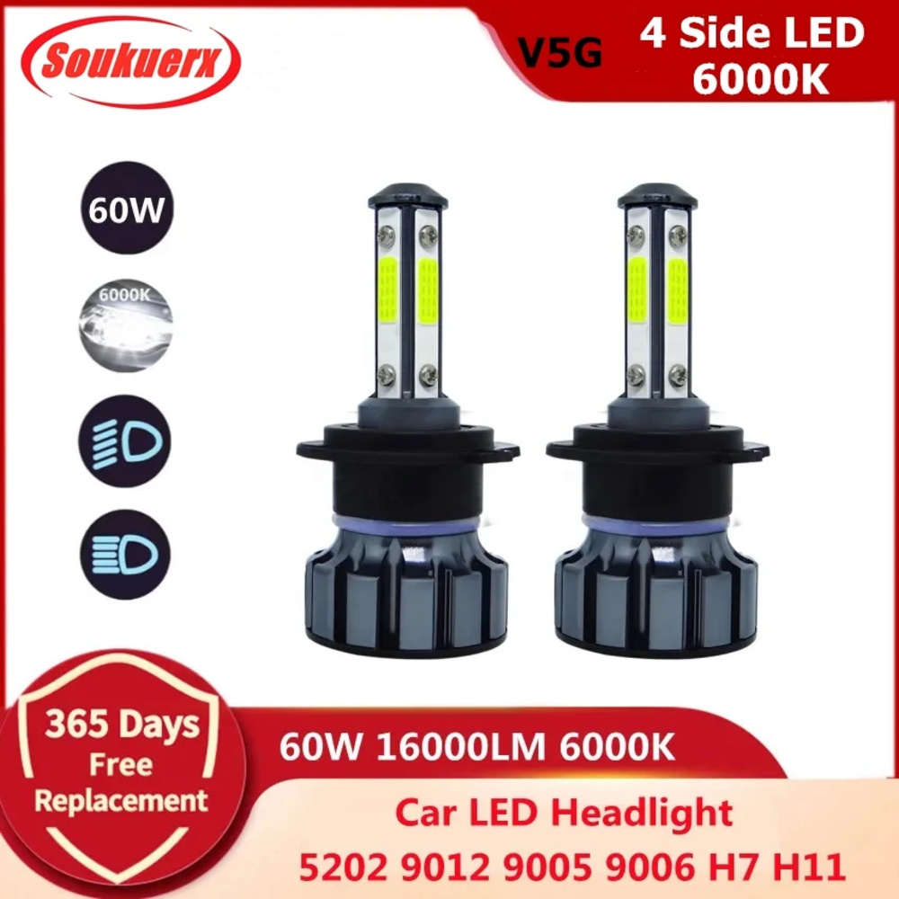 V5G H7 H11 Led Headlight Bulbs 9005 9006 Car Lights 60W 16000LM 6000K 4 Side COB LED HB3 HB4 Auto Headlamps