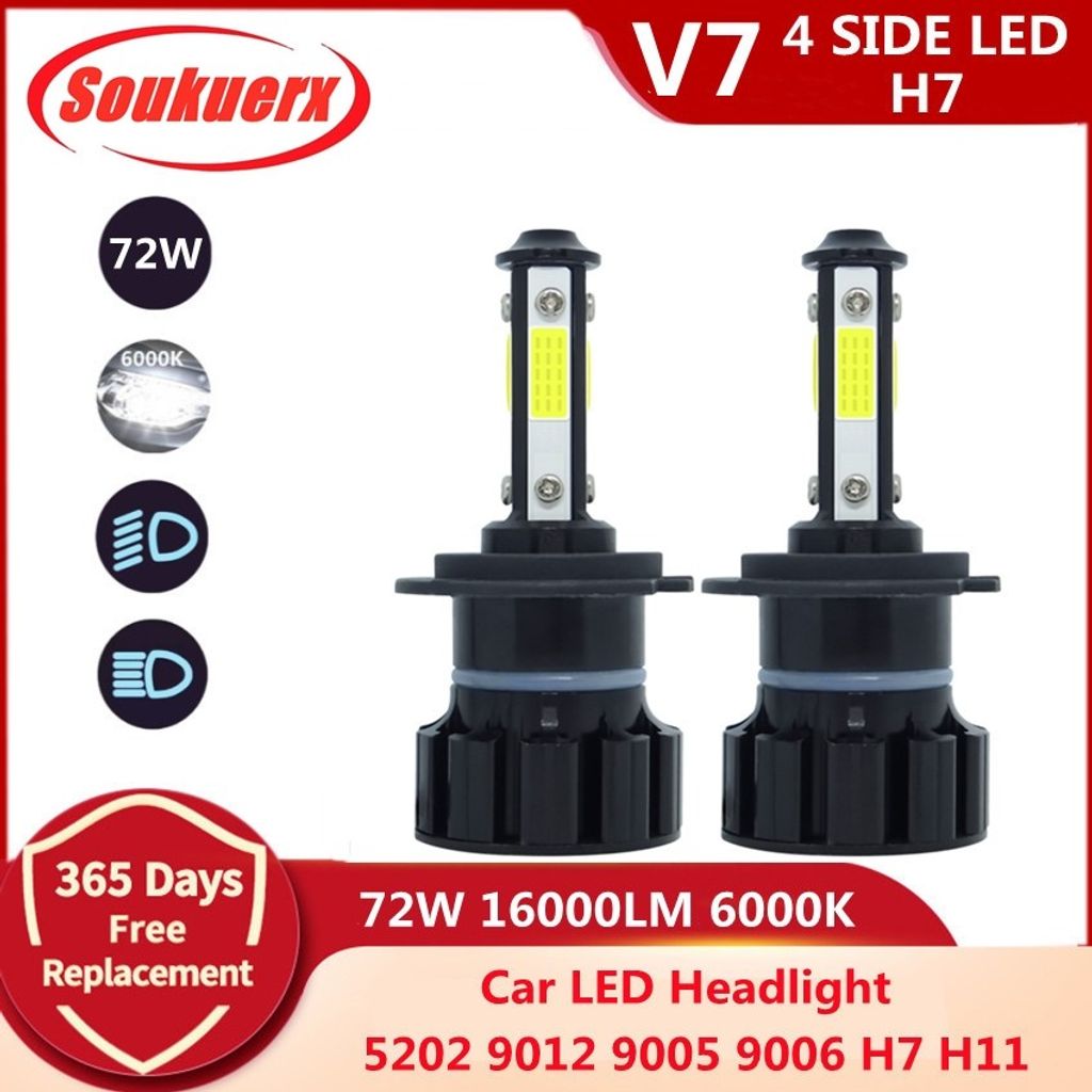 V7 72W 16000LM H7 H11 Led Headlight Bulbs 9005 9006 Car Lights 6000K 4 Side COB LED HB3 HB4 12V Auto Headlamps