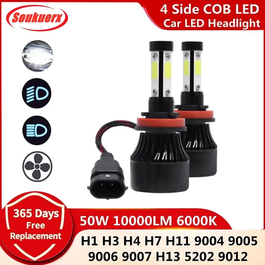 X7B H11 9005 9006 H7 Car LED Headlight Bulbs H4 Hi-Lo Beam 50W 10000LM 6000K COB Auto Headlamp 12v Led Car Lights
