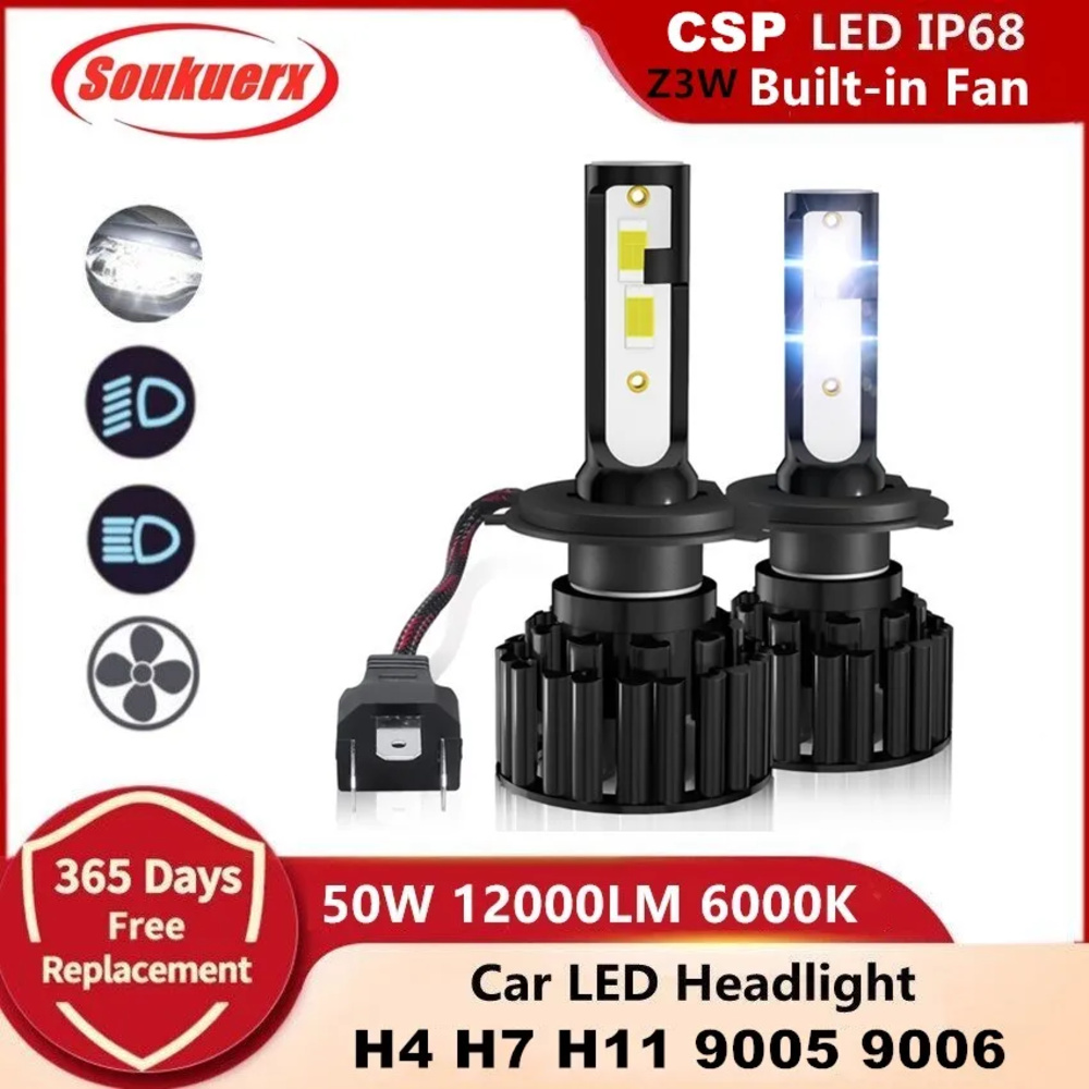 Z3W H4 H7 H11 9005 9006 Car Led Headlight Bulb HB3 HB4 CSP Led 50W 12000LM 6000K Headlamp Fog Lights